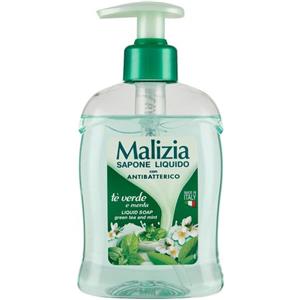 Malizia Sapone Liquido Antibatterico per Mani - 300 ml - Profumo Tè Verde e Menta - Formula a pH Fisiologico