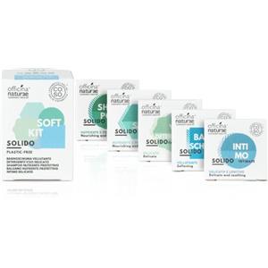 Officina Naturae Kit Cosmetici Solidi Soft - 5 Mini Size per Pelle e Capelli con Bagnoschiuma, Shampoo, Balsamo, Detergente Delicato e Sapone Intimo