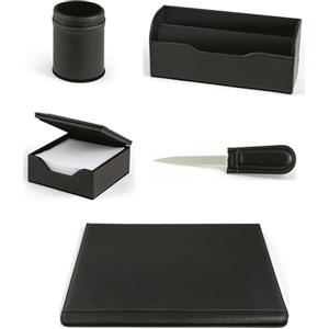 City Time Set Scrivania William in Ecopelle Nero - 5 Componenti con Bicchiere Portapenne, Apribusta, Portanotes, Sparticarte e Sottomano