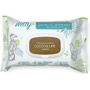 Welly Salviette Detergenti Cocco e Lime Esotico per Cani e Gatti - 40 Pezzi in Cotone Compostabile