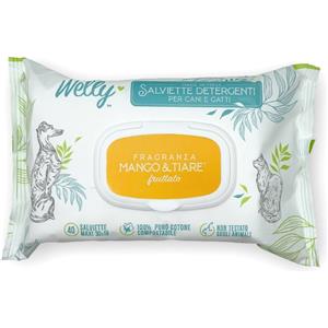 Welly Salviette Detergenti Mango e Tiarè Fruttato per Cani e Gatti - 40 Pezzi in Cotone Compostabile