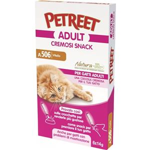 Petreet Cremosi Snack Vitello - 6 Bustine da 14 gr, Snack Genuino con Petto di Pollo e Agnello