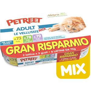 Petreet Le Vellutate Mix Pollo - Gustose creme di petto di pollo, 6X70GR, senza coloranti né conservanti