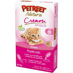 Petreet Snack Cremosi per Gatti - Tonno Pinne Gialle, 6 x 14 g, senza conservanti e coloranti
