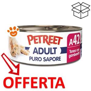 Petreet Alimento Umido per Gatti Adulto - Puro Sapore Tonno e Gamberetti 70g - Senza Coloranti e Conservanti