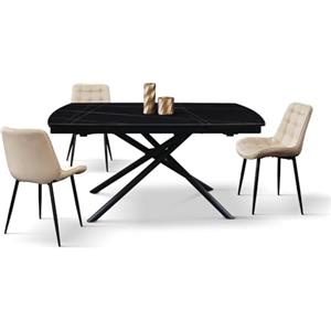 KONTE.DESIGN Tavolo BONIFACIO Allungabile in Ceramica Nero Sahara e Metallo Verniciato Nero, 160x90 cm - 240x90 cm