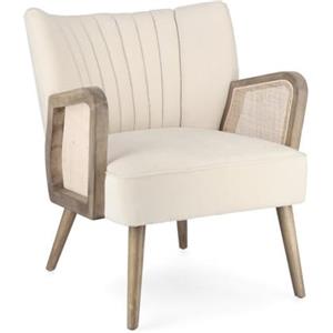 KONTE.DESIGN Poltrona VIRNA in velluto avorio con gambe e braccioli in legno naturale - Misure 64x71x79 cm