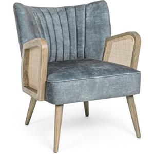 KONTE.DESIGN Poltrona VIRNA in tessuto effetto velluto azzurro con gambe e braccioli in legno naturale - Dimensioni 64x71x79 cm