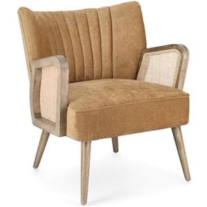 KONTE.DESIGN Poltrona VIRNA in velluto giallo senape con gambe in legno naturale - Misure 64x71x79 cm