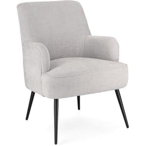 KONTE.DESIGN Poltrona ERNESTINE in tessuto grigio chiaro con gambe in acciaio verniciato nero - Misure 60x67x79 cm, altezza seduta 42 cm