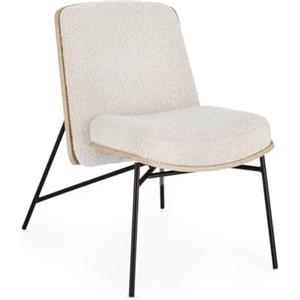 KONTE.DESIGN Poltrona EMERSON in tessuto bouclé avorio con gambe in acciaio nero e struttura in legno naturale