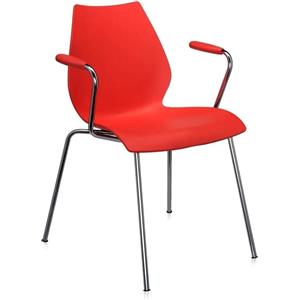 Kartell Maui Set da 2 Sedie con Braccioli - Design Vico Magistretti, Acciaio Cromato e Polipropilene, Impilabili