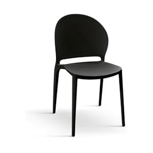 KONTE.DESIGN Set di 4 Sedie MARBELLA in Polipropilene Nero - Impilabili, Uso Interno ed Esterno, Design Moderno