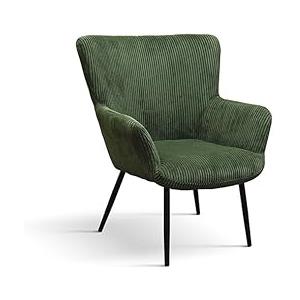 KONTE.DESIGN Poltrona MEGEVE in tessuto effetto velluto verde con gambe in metallo antracite - Misure: 72x73x87,5 cm