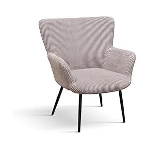 KONTE.DESIGN Poltrona MEGEVE in tessuto effetto velluto grigio chiaro con gambe in metallo antracite - Misure: 72x73x87,5 cm