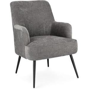 KONTE.DESIGN Poltrona ERNESTINE in tessuto grigio scuro con gambe in acciaio verniciato nero - Misure 60x67x79 cm, altezza seduta 42 cm