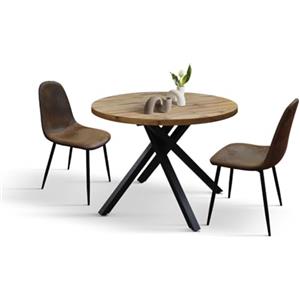 KONTE.DESIGN Tavolo rotondo POLA allungabile in legno rovere rustico con gambe in metallo nero - Ø100xH75 cm (140x100x75 cm aperto)