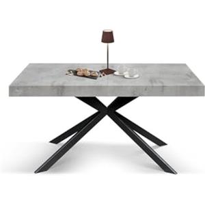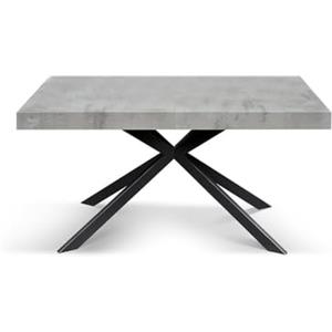 KONTE.DESIGN Tavolo CAMAIORE Allungabile in Legno Grigio Cemento con Base a X in Metallo Antracite - 180x90 cm Estensibile a 260x90 cm