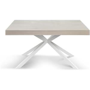 KONTE.DESIGN Tavolo CAMAIORE allungabile in legno olmo perla con base in metallo bianco, dimensioni 160x90 cm - 240x90 cm