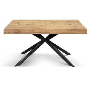 KONTE.DESIGN Tavolo CAMAIORE allungabile in legno rovere rustico con base in metallo antracite - 160x90 cm (fino a 240x90 cm)