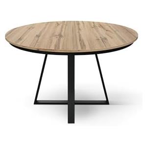 KONTE.DESIGN Tavolo rotondo PANTELLERIA in legno effetto rovere rustico, base a X in metallo antracite, allungabile da ⌀120 cm a ⌀170 cm