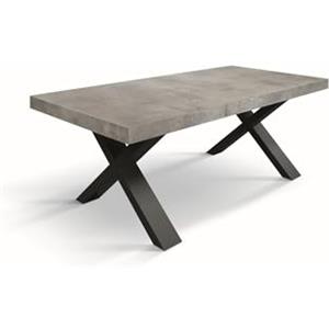 KONTE.DESIGN Tavolo allungabile AMALFI in legno effetto grigio cemento, gambe a X, 160x90 cm - 240x90 cm, per fino a 10 persone
