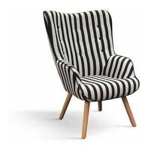 KONTE.DESIGN Poltrona HAVANA in tessuto a righe bianco e nero con gambe in legno - Stile moderno, ideale per salotto o camera da letto, dimensioni 67x76x97 cm