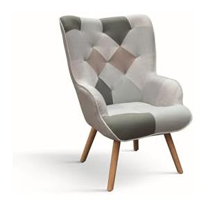 KONTE.DESIGN Poltrona HAVANA - Tessuto patchwork multicolore, gambe in legno, stile moderno, 67x76x97 cm
