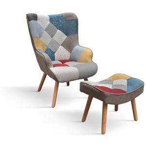 KONTE.DESIGN Poltrona HAVANA in tessuto patchwork multicolore con poggiapiedi, stile moderno e versatile