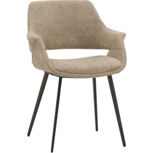 KONTE.DESIGN Set di sedie EMBAJADORES in tessuto tortora effetto bouclé con gambe in metallo nero e braccioli - Misure: 58x57x81 cm
