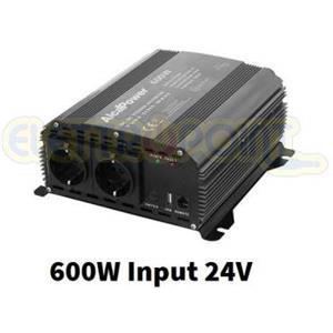 Alca Power Inverter Onda Sinusoidale Pura 600W - Input 24V DC, Output 230V AC, Compatto e Protetto