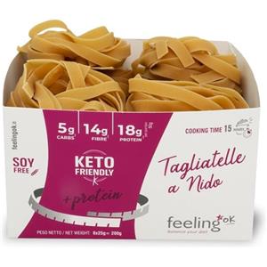 Feeling Ok Tagliatelle a Nido Proteiche Low Carb 200 g - Alta Percentuale di Proteine e Basso Contenuto di Carboidrati