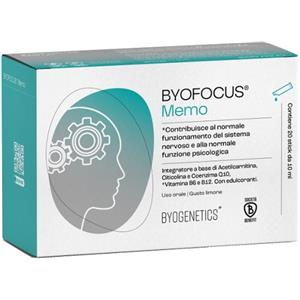 BYOGENETICS Srl BYOFOCUS MEMO - Integratore Alimentare 20 Stick da 10 ml con Acetilcarnitina, Citicolina e Coenzima Q10