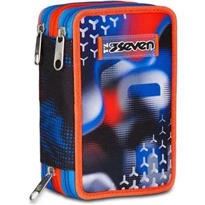 Seven Astuccio Scuola 3 Zip Optical Shade Boy - Triplo Scomparto, 45 Pezzi, Dimensioni Compatte