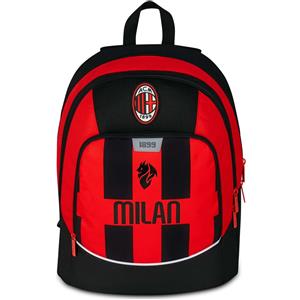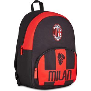 Seven Zaino Scuola A.C. Milan - Doppio Scomparto, Tasca Porta Borraccia, 29 Litri, Imbottito, Nero Rosso