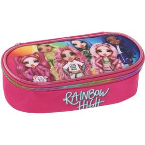 MGA Rainbow High - Astuccio Ovale Scuola in Poliestere con Vano Interno e Chiusura a Zip, 22x10x7 cm, Rosa