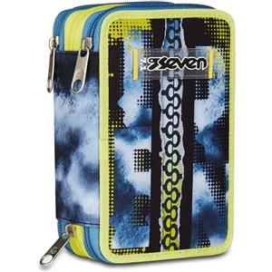 Seven Astuccio Scuola 3 Zip Shady Dye Boy - Design Moderno, Tre Scomparti, Dimensioni 12,5x20x7 cm