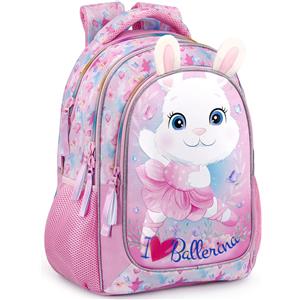Julian Ross Bunny Ballerina - Zaino Scuola Elementare Ergonomico per Bambina con 3 Scomparti e Schienale Imbottito