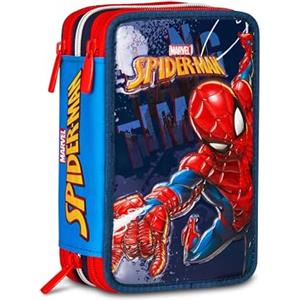 Seven Spiderman Astuccio Scuola 3 Zip - Blu, Triplo Scomparto con 44 Accessori per Bambini