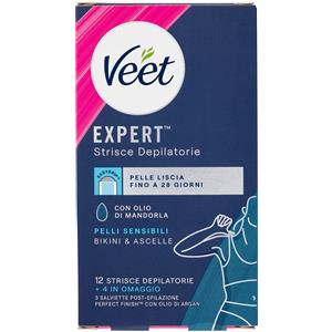 Veet Strisce Depilatorie Expert Ascelle e Bikini 12 4 con Olio di Mandorla per Pelli Sensibili