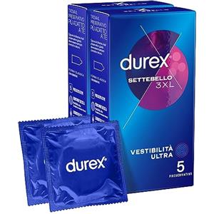 Durex Settebello 3XL Preservativi Extra Large Uomo in Lattice di Gomma Naturale Trasparenti Lubrificati Forma Classica con Serbatoio Vestibilità Ultra Spessore Medio - 2 Confezioni da 5 Profilattici