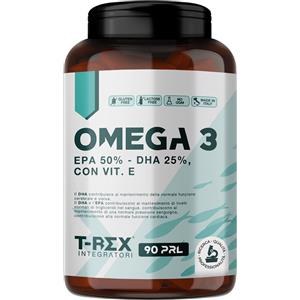 T-Rex Integratori Omega 3 Olio di Pesce FOS 1000 mg - 90 capsule softgel con EPA 500 mg e DHA 250 mg, supporto per colesterolo e cuore, certificato pesca sostenibile