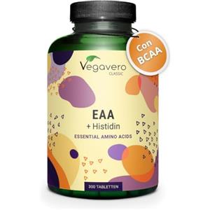 Vegavero EAA - Aminoacidi Essenziali Naturali da Fermentazione, 300 Compresse, Senza Additivi, con BCAA 2.1.1, Prodotto Vegano