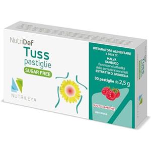 NUTRILEYA NutriDef Tuss Calm Sugar Free - 30 Pastiglie gusto Lampone - Sollievo per tosse secca e grassa - Con Grindelia, Malva e Sambuco - Senza zucchero e glutine