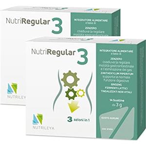 NUTRILEYA NutriRegular 3 - 28 Bustine per il Benessere Gastrointestinale con Zenzero, Ginseng e Probiotici