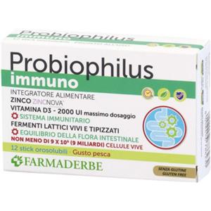 Farmaderbe Probiophilus Immuno - Integratore Orosolubile 12 Stick Pack Gusto Pesca con Fermenti Lattici, Vitamina D3 e Zinco