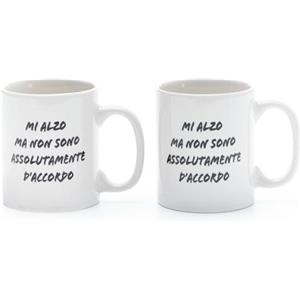 Più Forty Set 2 Tazzine in Ceramica 12 cl con Stampa 'Mi Alzo ma non sono assolutamente d'accordo' - Bianco