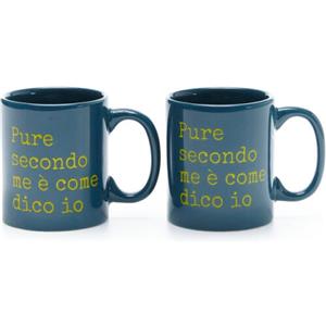 Più Forty Set 2 Tazzine in Ceramica Blu 12 cl con Stampa 'Pure Secondo Me è Come Dico Io'