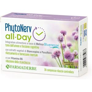 Farmaderbe PhytoNerv All Day - Integratore Alimentare con Melissa, Biancospino, Passiflora e Camomilla, 30 Compresse