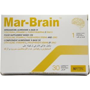 MAR-FARMA Mar-Brain - Integratore Alimentare per Memoria e Funzioni Cognitive con Citicolina, Vitamina E, Fosfatidilserina e Zinco - 30 Compresse